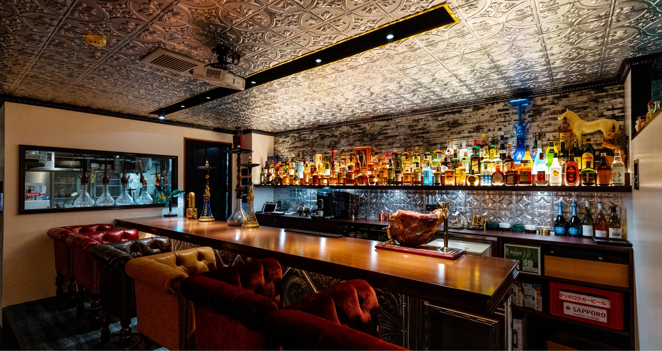 夜カフェ、喫茶店としてフードやパフェ、スイーツなども充実 シーシャは熟練のスタッフが手掛ける玄人向けのシーシャから ノンニコチンを使った初心者向けのシーシャまで幅広く。 ウィスキーの種類も豊富でバーとしても当然お使い頂けます。 アングルのように様々な角度から 類人煙のように自由気ままに楽しみ和やかに 憩いの空間をお届け致します。